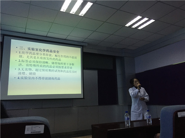 为进一步贯彻落实学校《关于开展2017年度实验室安全检查工作的通知》文件要求,结合教技司〔2017〕255号《关于开展2017年度高校科研实验室安全检查工作的通知》文件相关标准,为进一步加强学院实验室安全管理工作,公共卫生学院开展了实验室安全系列活动。 9月11日上午8:30,公共卫生学院于二楼会议室召开系、中心、科室主任会议,会上,刘雅文副院长传达了学校“2017年实验室安全工作部署会”会议精神,魏国志副院长布置了我院实验室安全相关工作,要求各实验室对照《高校实验室安全检查项目表(2017)》开展实验室安全自查,对存在的安全隐患建立《高校科研实验室安全隐患自查台账》,并落实整改措施。 9月14日下午13:30,公共卫生学院于三楼报告厅对2017级全体研究生进行实验室准入培训,培训特邀请学院放射实验教学中心主任张海英老师、预防实验教学中心主任赵淑华老师、生物安全实验室负责人甄清老师、医学信息实验教学中心邹男男老师分别就辐射安全、化学安全、生物安全、网络信息安全四个方面进行专项培训,此次培训覆盖面广、针对性强,课后利用考试巩固培训效果,使学生时刻紧绷实验室安全这根弦。 9月15日上午,公共卫生学院党委书记赵国利、党委副书记兼副院长、纪委书记刘丽、行政副院长魏国志、综合办公室主任魏冬柏以及消防安全员组成实验室安全检查小组,对学院各科室、实验室进行地毯式排查。对照各实验室上报的安全隐患台账,重点查看实验室危险化学品管理情况、实验设备运行情况、用火用电情况、消防设施管理情况、消防安全制度落实情况等,对检查中发现的问题现场记录,协调解决。赵国利书记强调,安全工作要做实、做细,要把实验室安全规章制度落到实处,形成安全检查长效机制,切实保障学院师生生命和财产安全;魏国志副院长要求各实验室要加强危化品的管理,做好隐患排查,建立健全相关档案记录。 学院一直以来高度重视实验室安全工作,每年班子都对此项工作进行布署,纳入学院年度重要工作来抓,组织学生专业培训,进行排查。通过一系列的实验室安全活动,强化了师生的安全责任意识,进一步保障了学院教学、科研工作的顺利进行。