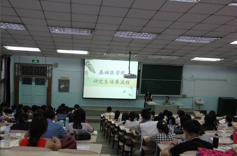 为保证2016级研究生顺利入学,并尽快了解研究生生活,基础医学院于8月23日下午13:30在新民校区第十阶梯教室举行了研究生新生入学培训会。基础医学院副院长李一雷、党委副书记费淑波、研究生办公室主任丁红枫、研究生办公室秘书王新月出席了培训会。培训会由研究生办公室丁红枫主任主持。
