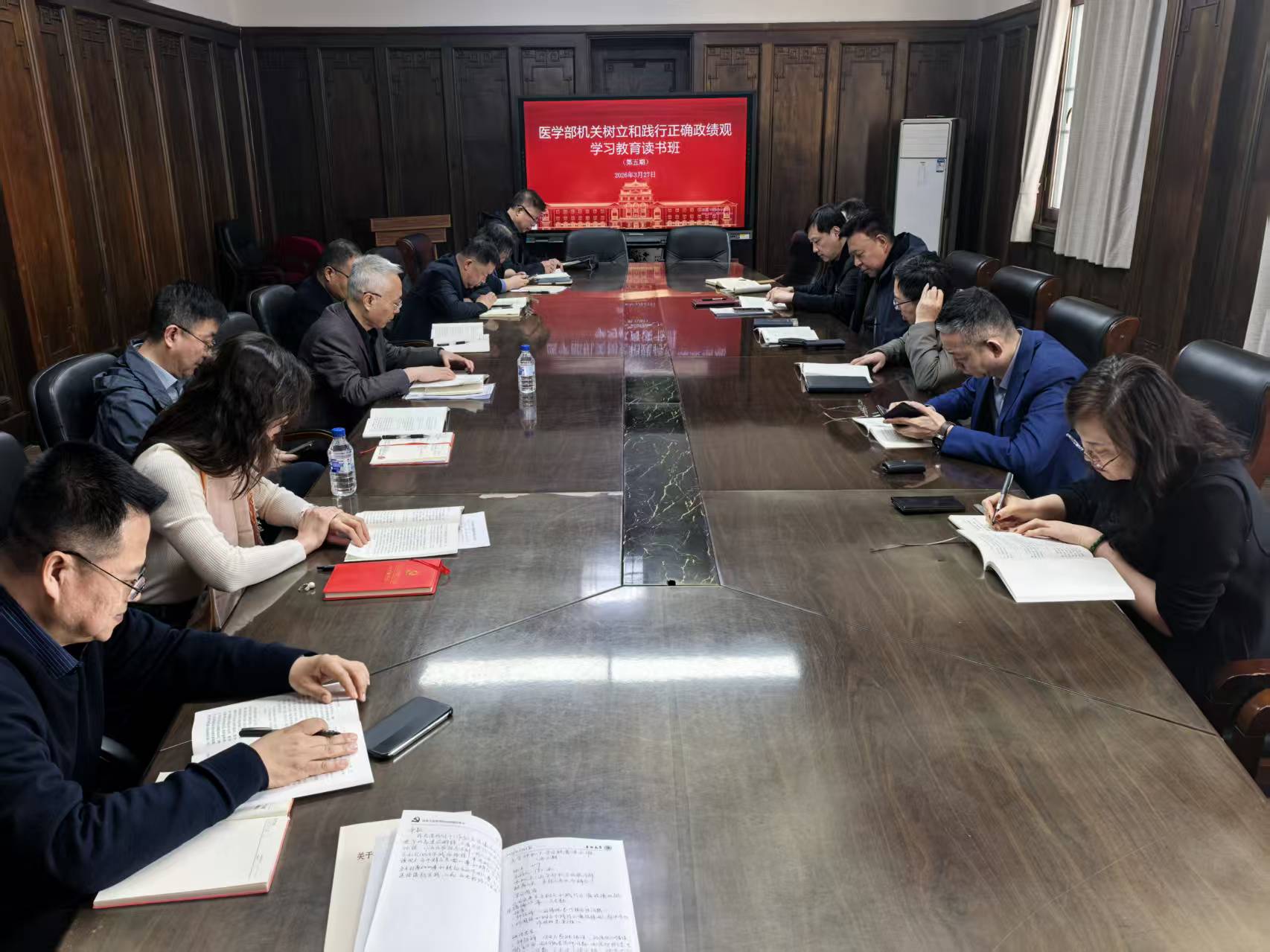 为深入开展树立和践行正确政绩观学习教育,按照学校统一部署要求,医学部机关近期组织举办了学习教育读书班,截至目前已开办五期。医学部机关全体处级干部参加读书班集体学习。