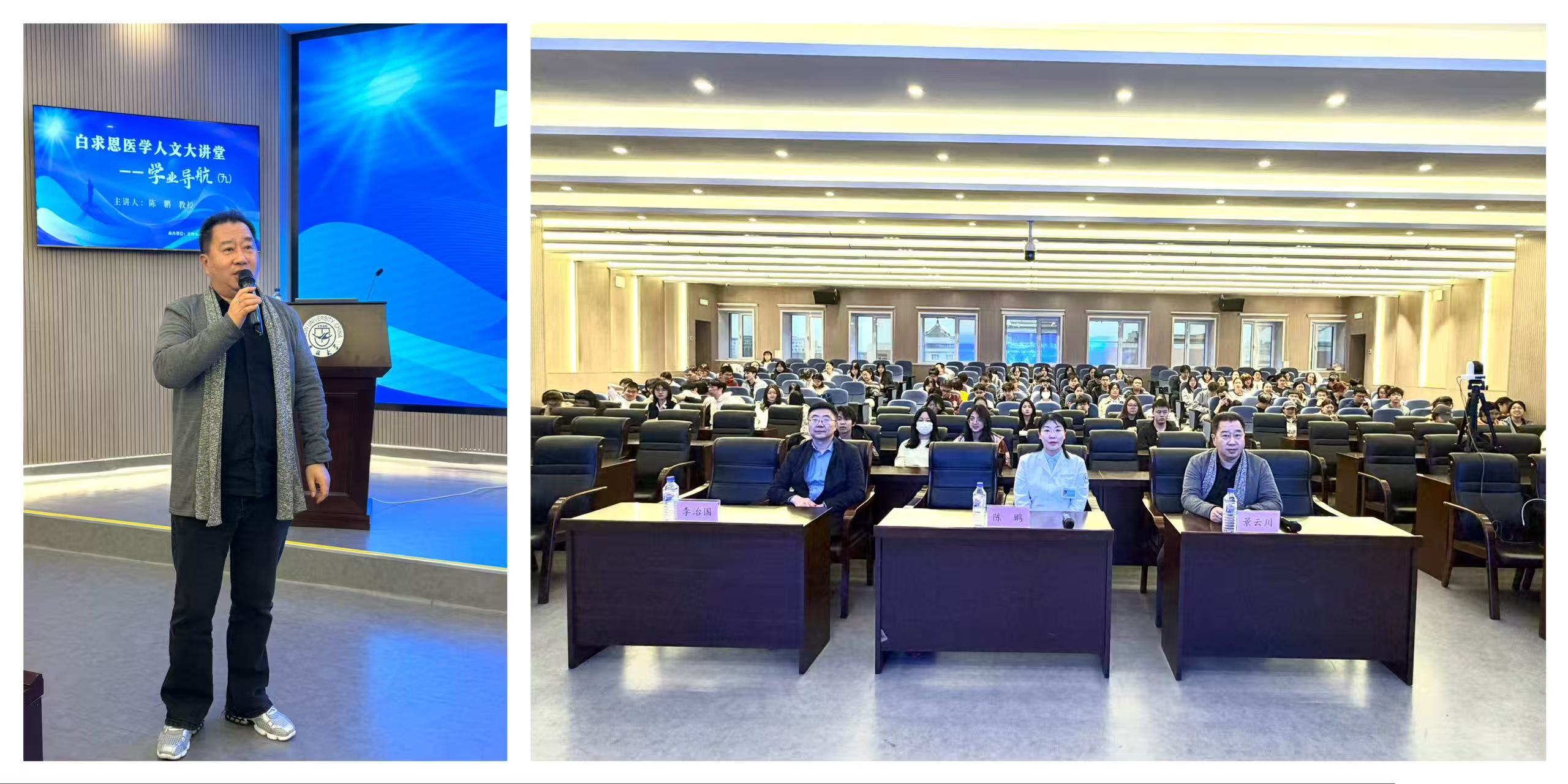 4月21日,白求恩医学人文大讲堂(2026年第1期)之“学业导航”第9期讲座在新民校区第一教学楼白求恩大讲堂举行。本次讲座特邀吉林大学第二医院陈鹏教授担任主讲,医学部相关教学单位220余名二年级本科生及教师代表现场参与,活动由医学人文教育中心副主任景云川主持。