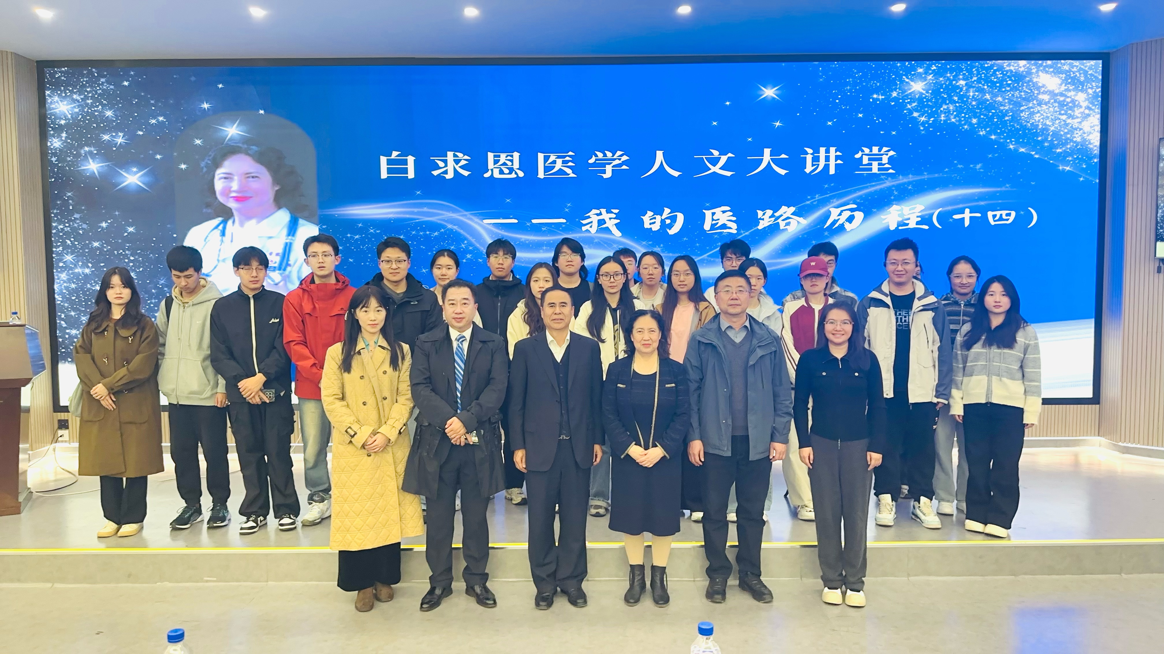 10月15日,由医学部医学人文教育中心举办的白求恩医学人文大讲堂(2025年第6期)之“我的医路历程”第十四期讲座在新民校区第一教学楼白求恩大讲堂举行。本期特邀吉林大学第二临床医学院张捷教授主讲,来自医学部相关教学单位的 220 余名本科生、研究生和教师代表现场参与活动,活动由医学人文教育中心主任于洗河主持。