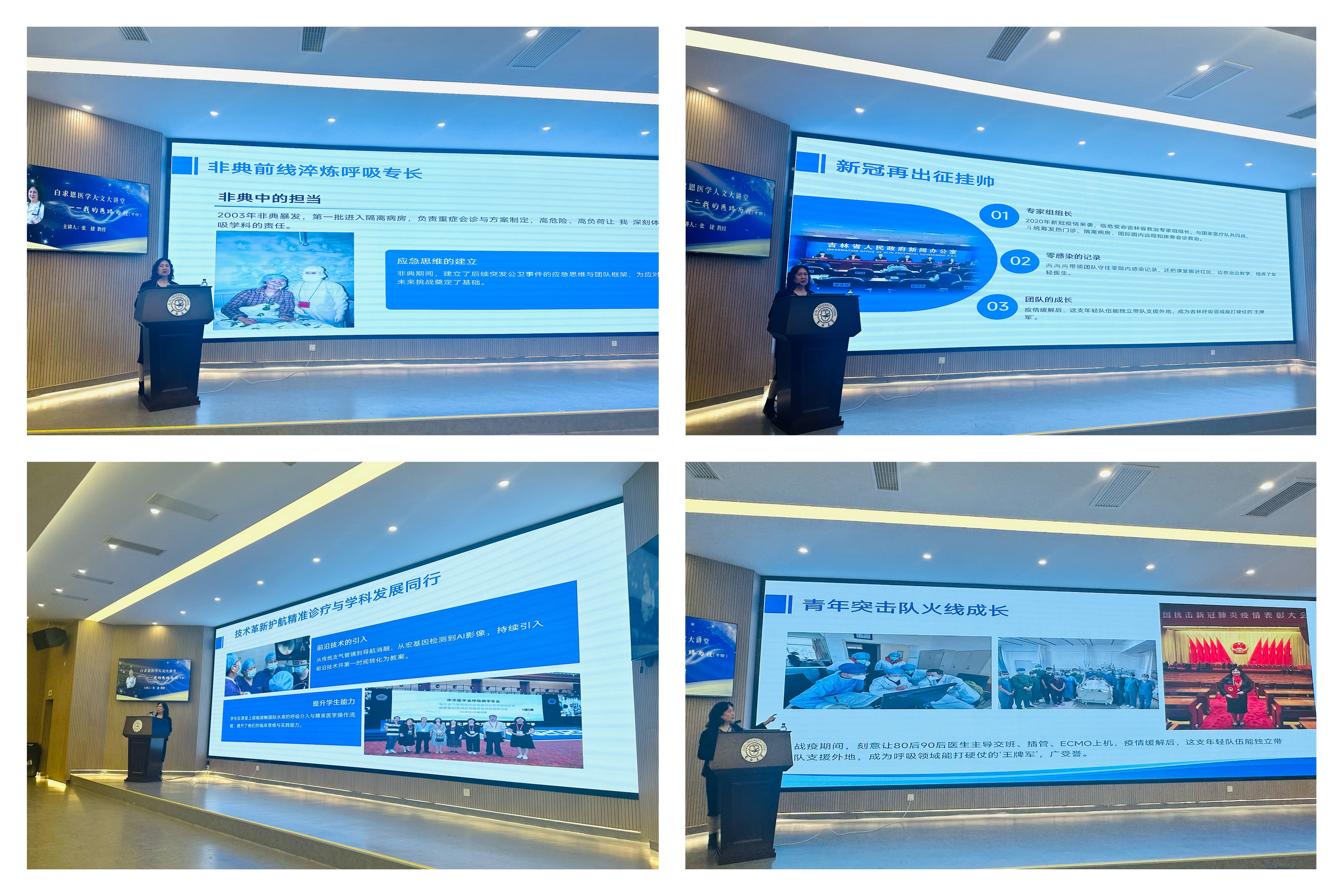 张捷教授毕业后进入吉林大学第二临床医学院呼吸科工作,在导师赫国志教授、林树青副院长等前辈的引领下,逐步成长为一名兼具技术与温度的医生。讲座中,她分享了两段刻骨铭心的“战疫经历”,让现场学生深刻感受到医者的责任与担当。2003年“非典”爆发,临危受命,冲在抗疫一线,“那是我第一次深入接触重症,也是第一次明白‘舍生忘死’不是口号,而是医者的本能”。2020年“新冠”来袭,张捷教授两次带领医疗队支援疫情防控,在吉林疫情最严峻时,与“国家队”共同开展会诊。谈到此处,她有很深感触并倍感欣慰,“许多毕业于吉林大学的学生已在基层医院担起专家组组长的重任,他们中有的不是呼吸科或重症科的专科医生,却凭着扎实的基础、快速的学习和真挚的人文关怀,出色完成了救治任务。这说明我们培养的学生,不仅能掌握技术,更能传承医者的责任”。