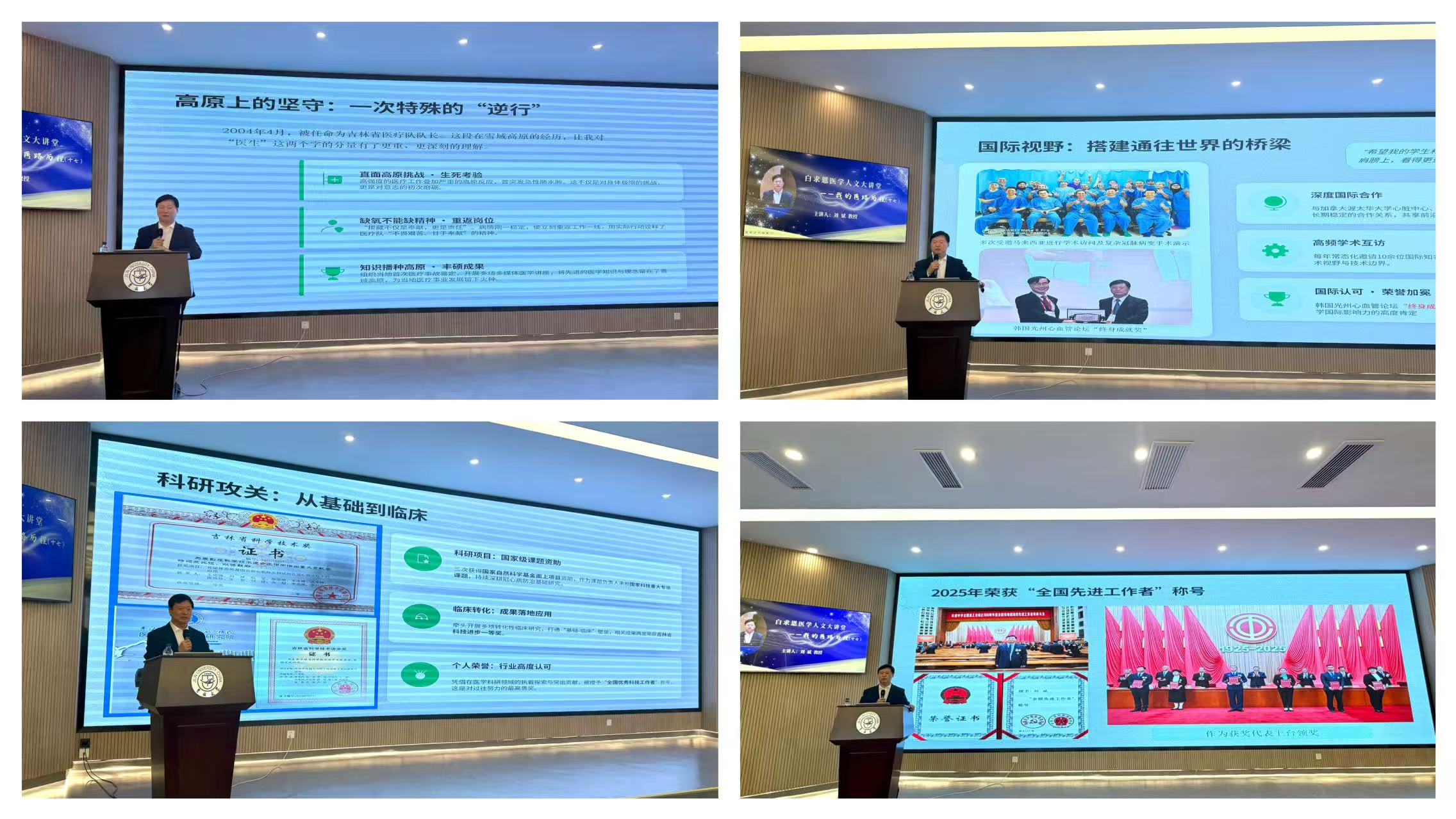 讲座中,刘斌教授还回顾了中国医疗事业的发展变迁。他感慨,早年国内医疗条件相对落后,而随着国家综合实力的提升,如今医学发展已迎来黄金时代。他结合自身海外求学经历、援藏实践以及广泛的国际学术交流见闻,鼓励学子要树立国际视野,既要积极学习和借鉴先进理念与技术,也要勇于走出国门、自信展现中国医者的风采,助力中国医学从“跟跑”到“领跑”的跨越。